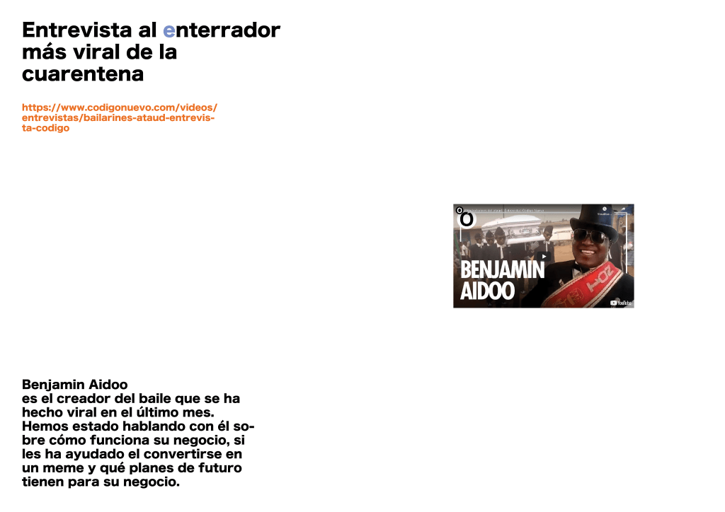 Este catálogo, distribuido por orden alfabético, es un recopilatorio de todos los archivos de interés que guardo a diario. Lo he llamado en confinamiento, porque incluyo únicamente los encontrados durante estos días. No sigo ningún criterio, únicamente aquel que despierta ciertos interés en mi y por el contrario, descarta otros. De alguna manera, lo que pretendo es mostrar, para aquellos que estén interesados, referencias que documenten, expresen o narren el/los trabajos de otra persona o colectivos. De este modo, generas formas alternativas que complementan tu tiempo.